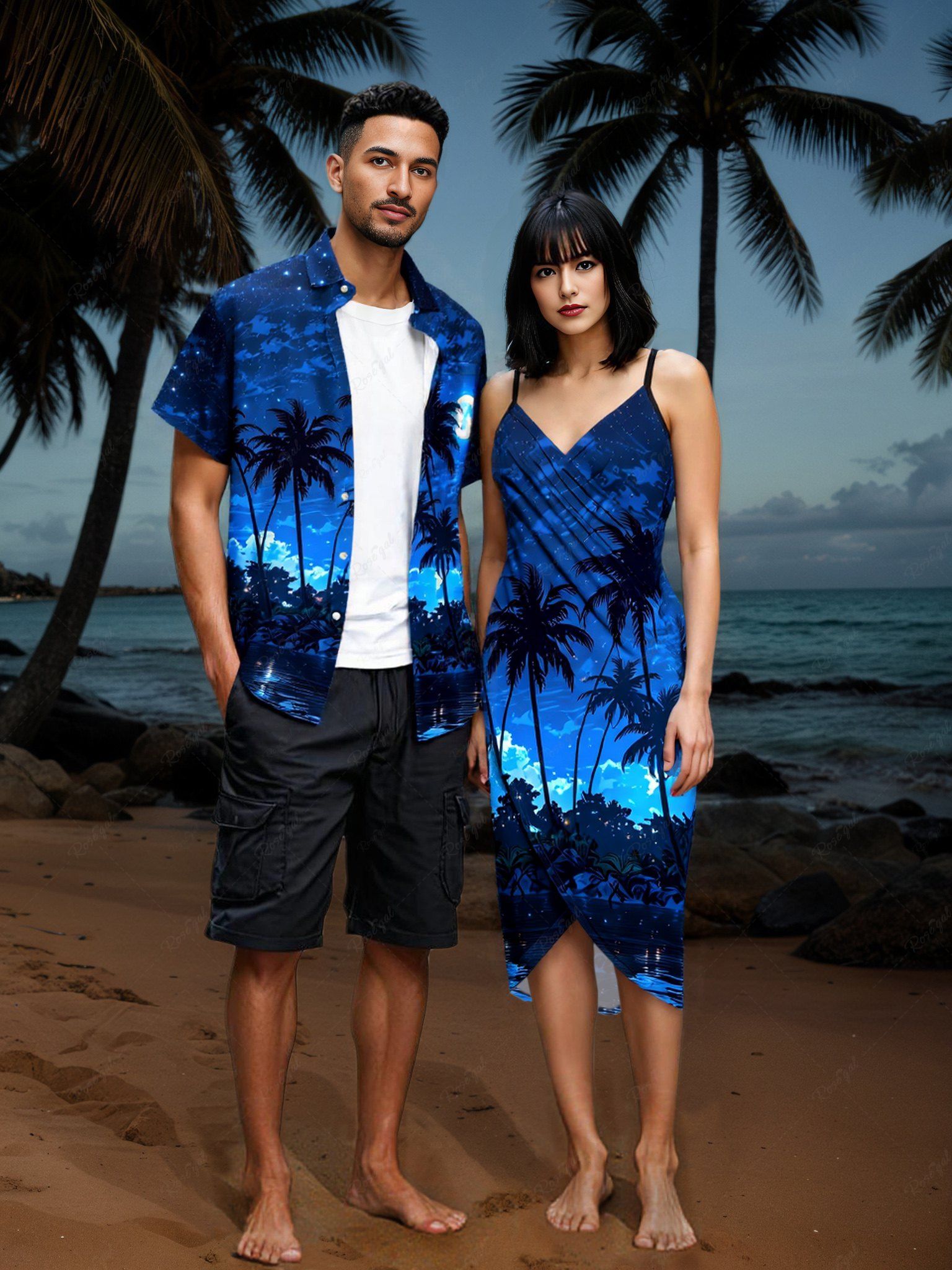 Coconut Tree Sea Ombre Galaxy Print Plus Size Matching Hawaii Beach Outfit For Couples