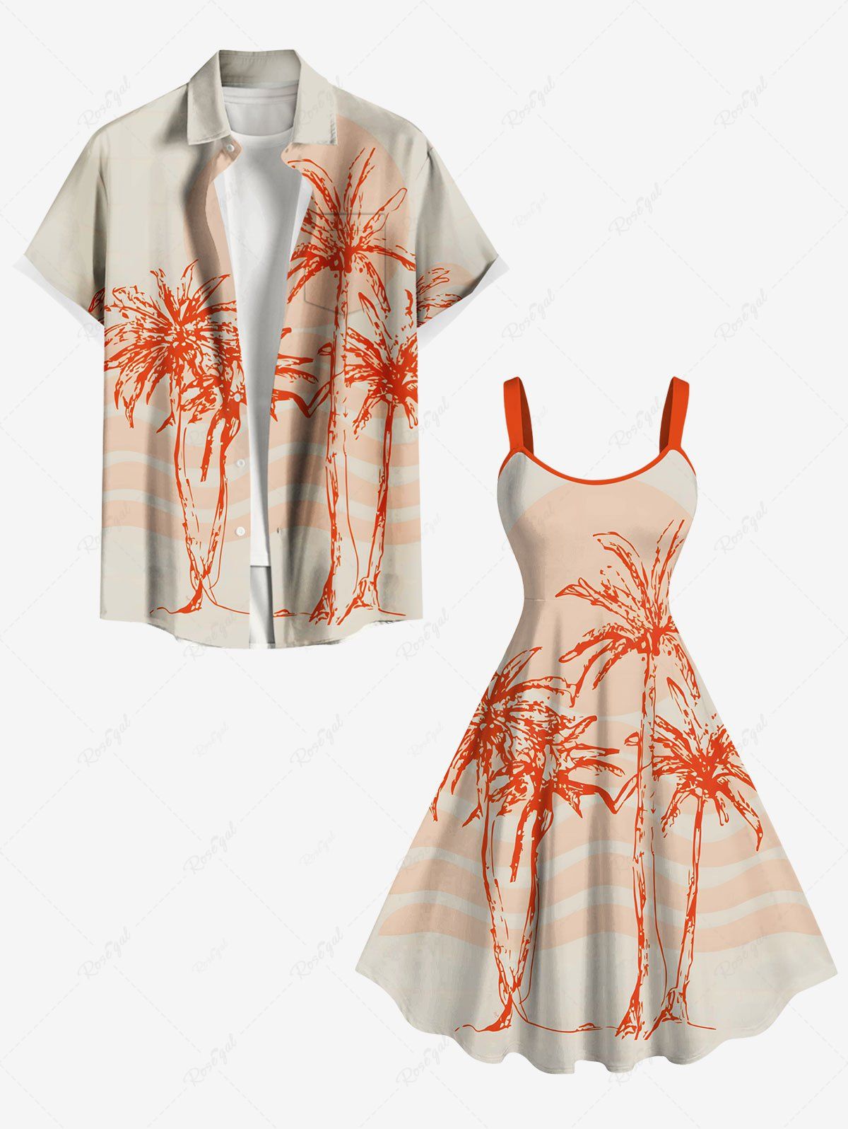 Coconut Tree Sea Waves Sun Print Plus Size Matching Hawaii Beach Outfit For Couples
