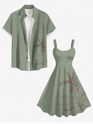 Coconut Tree Seascape Print Plus Size Matching Hawaii Beach Outfit For Couples