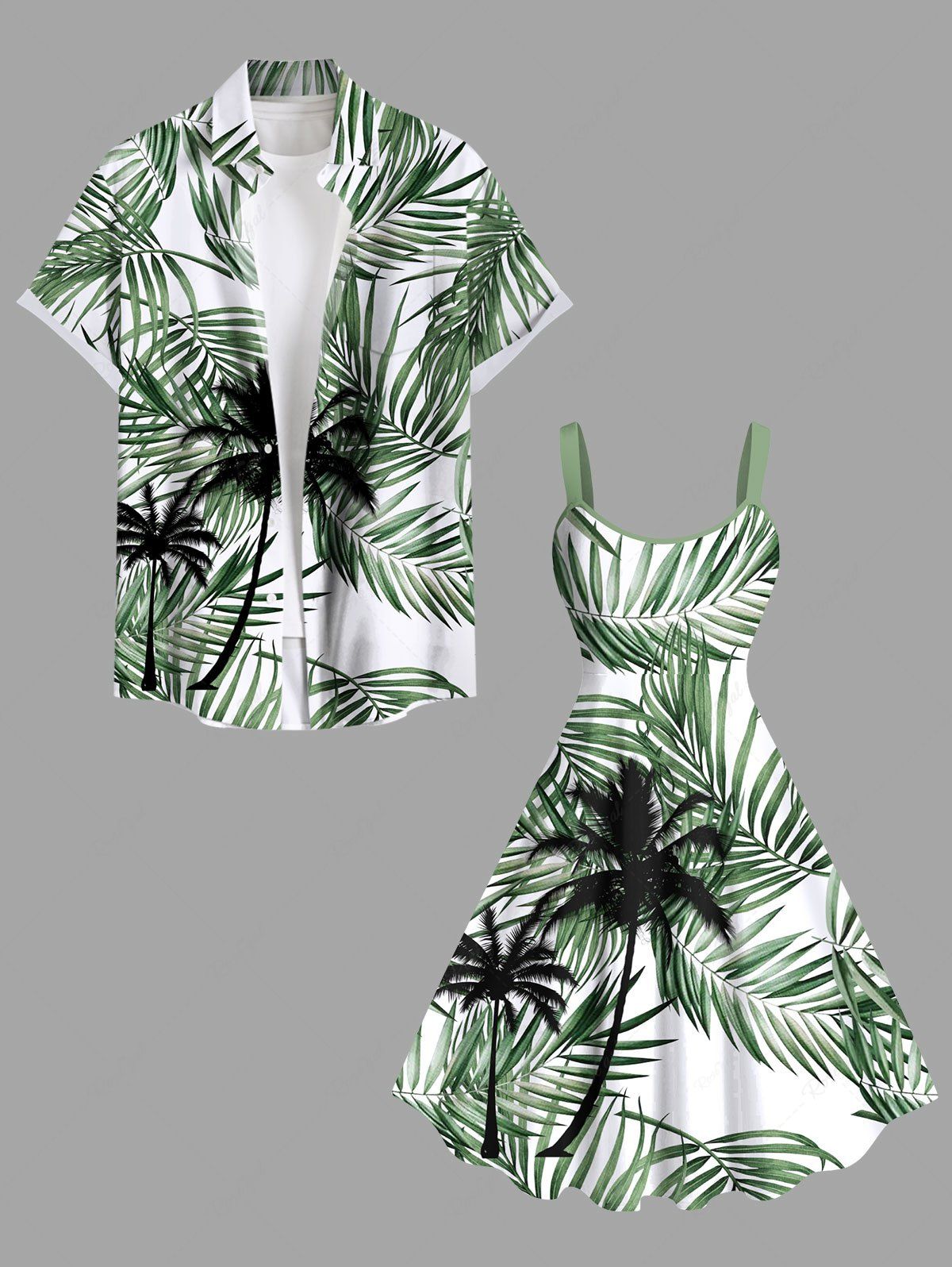 Coconut Tree Tropical Leaf Print Plus Size Matching Hawaii Beach Outfit For Couples