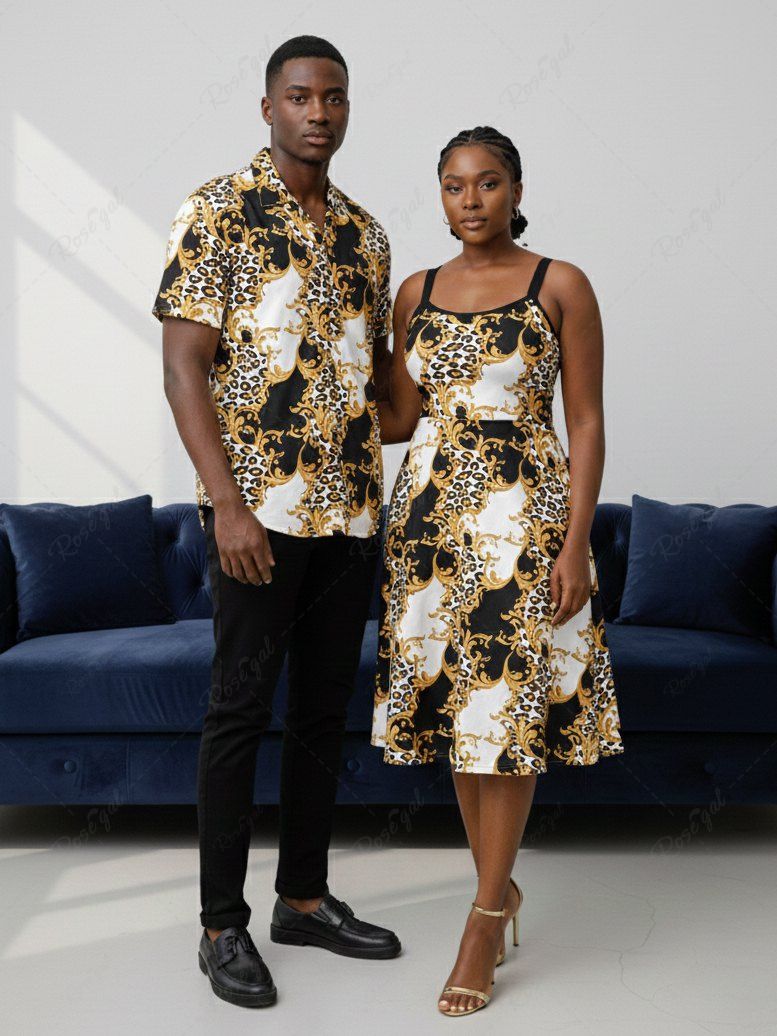 African Print Floral Leopard Colorblock Plus Size Matching Hawaii Beach Outfit For Couples