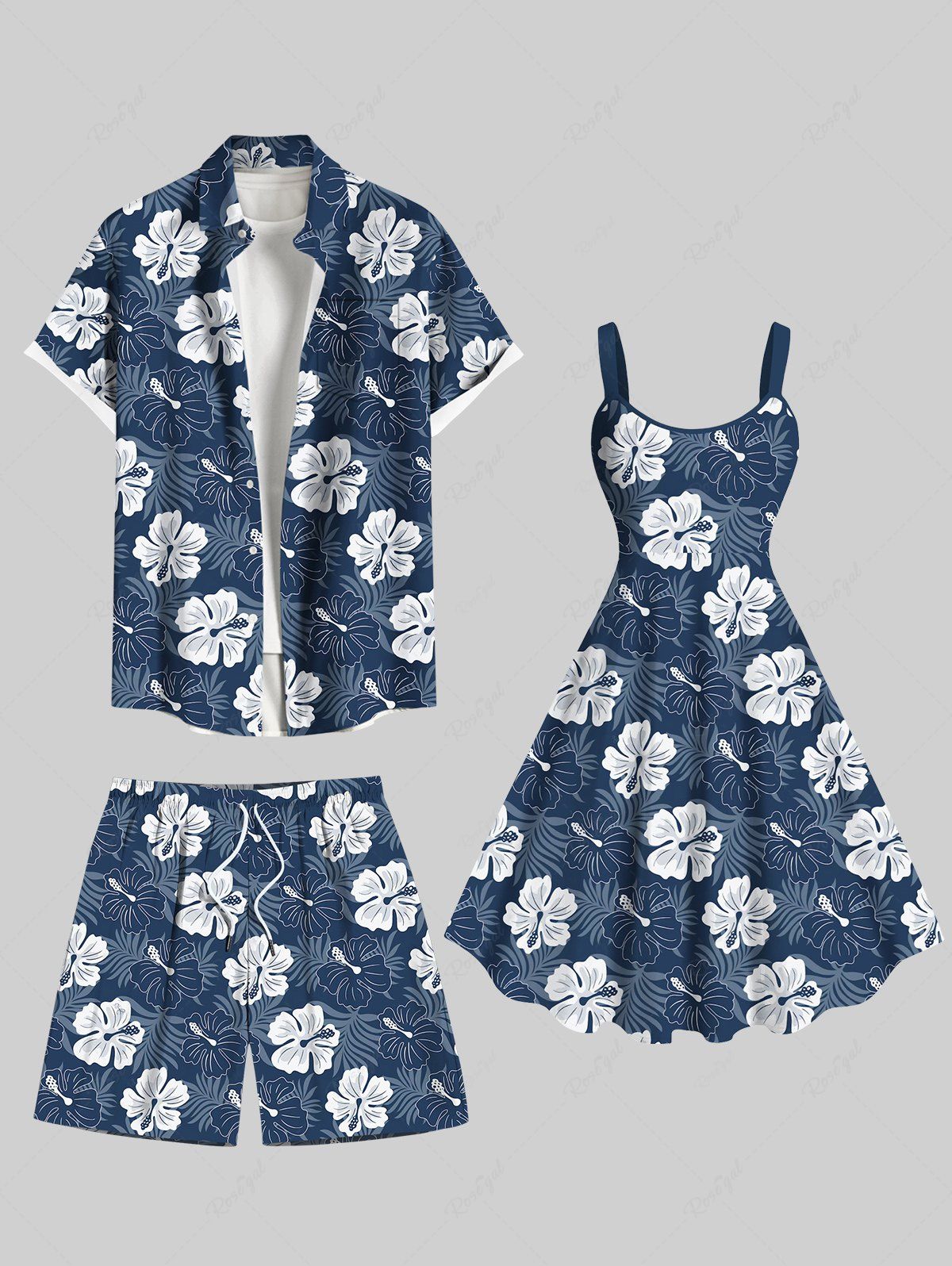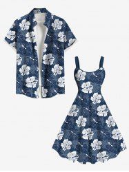 Flower Tropical Leaf Print Plus Size Matching Hawaii Beach Outfit For Couples