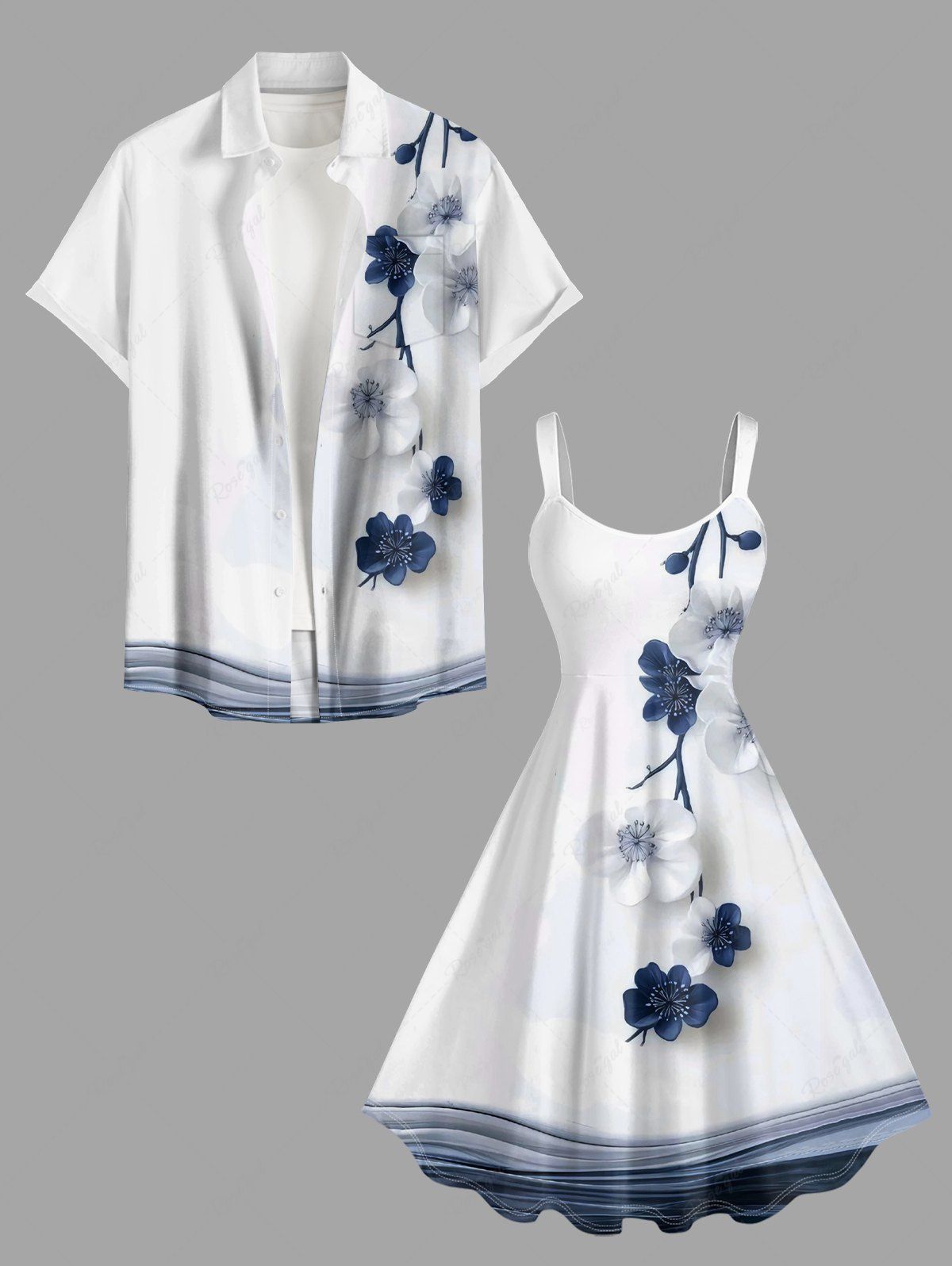 Flower Branch Print Plus Size Matching Hawaii Beach Outfit For Couples