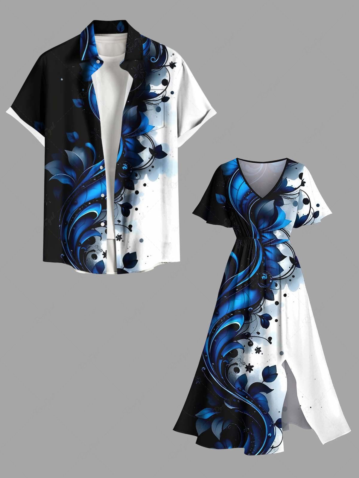Flower Leaf Contrast Print Plus Size Matching Hawaii Beach Outfit For Couples