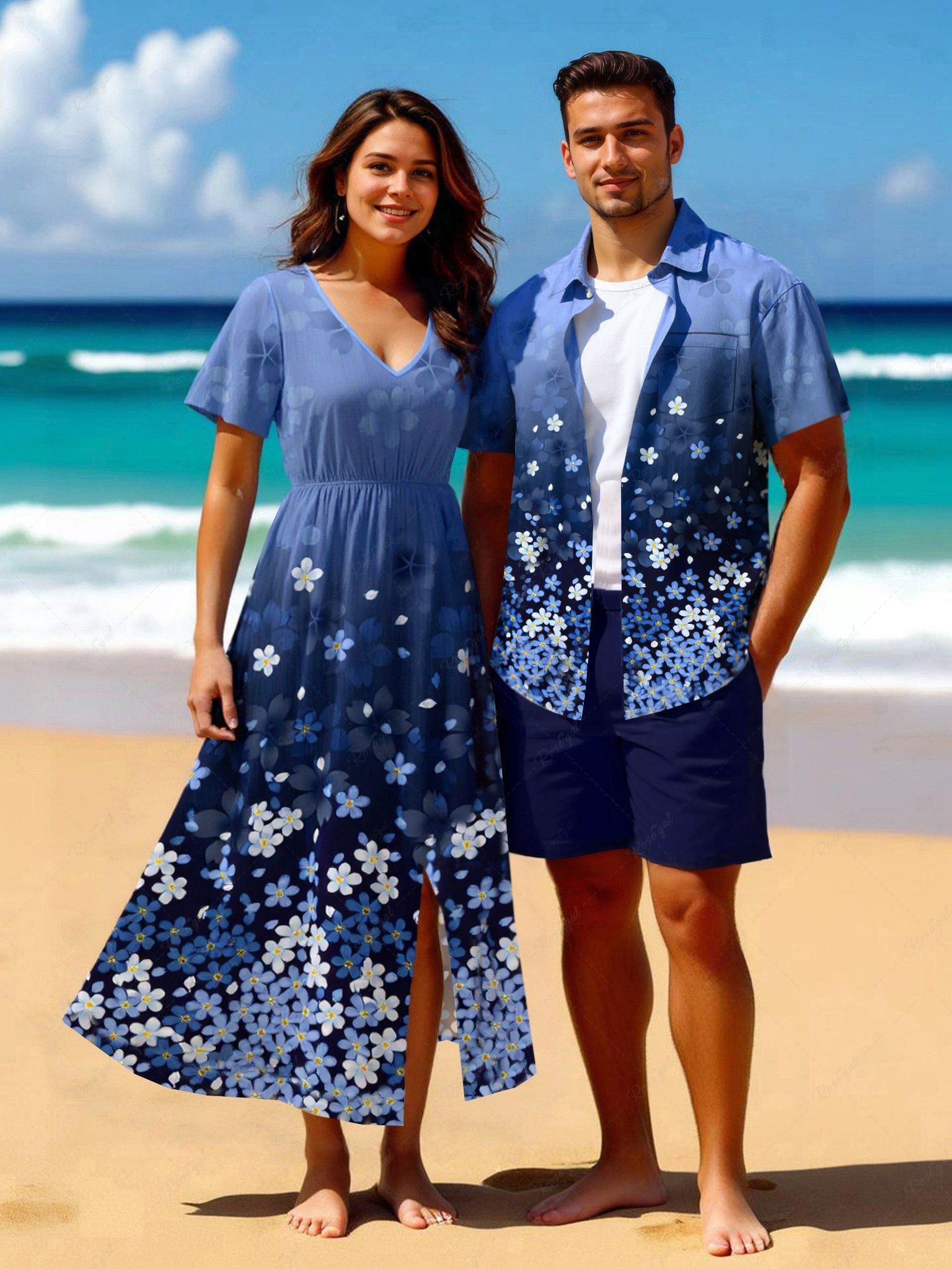 Flowers Leaf Ombre Print Plus Size Matching Hawaii Beach Outfit For Couples