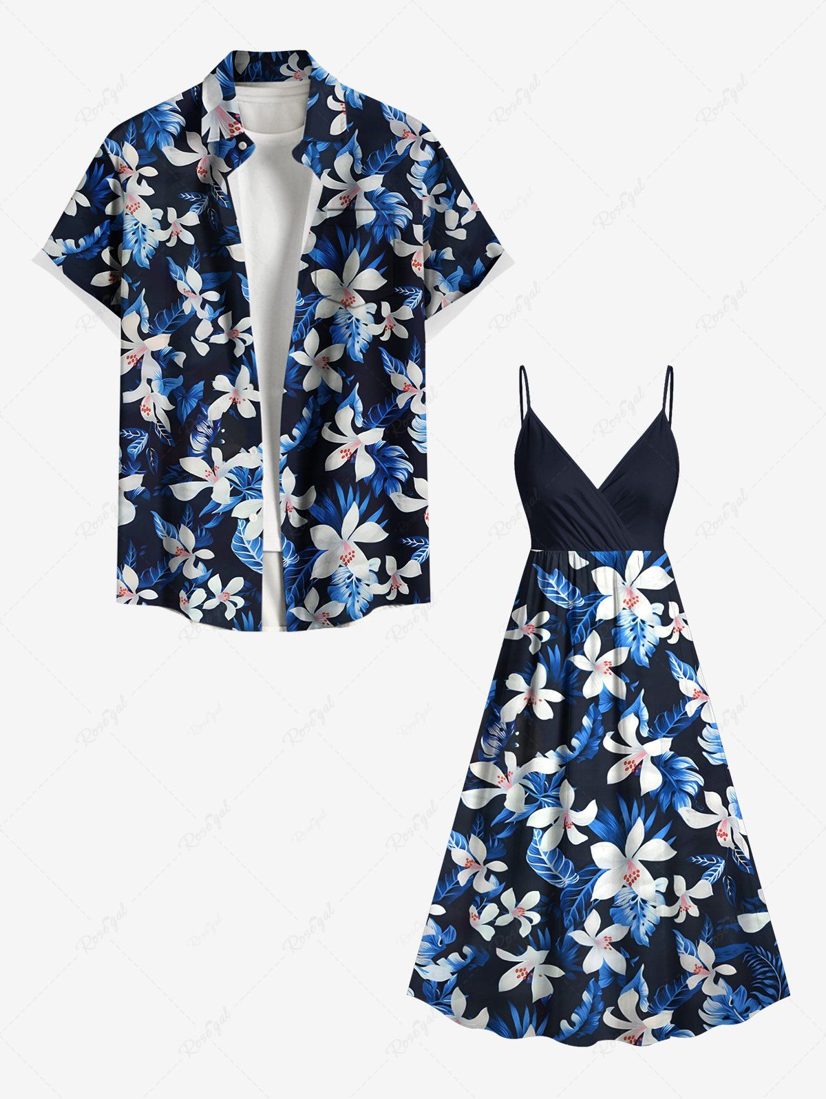 Flowers Leaf Print Plus Size Matching Hawaii Beach Outfit For Couples