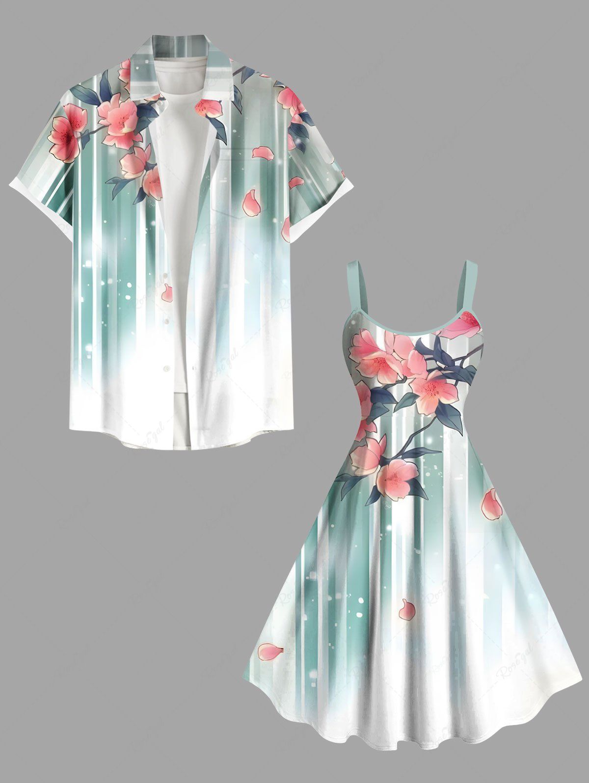 Flowers Leaf Stripes Colorblock Ombre Print Plus Size Matching Hawaii Beach Outfit For Couples