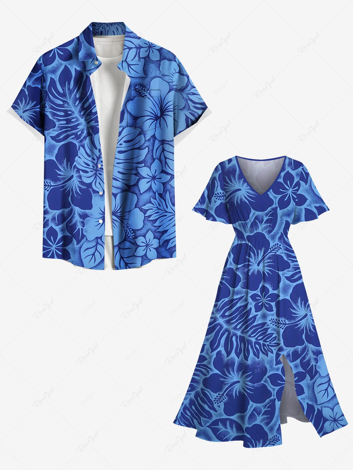 Hibiscus Flower Leaf Tropical Print Plus Size Matching Hawaii Beach Outfit For Couples