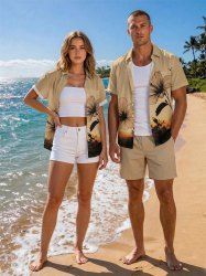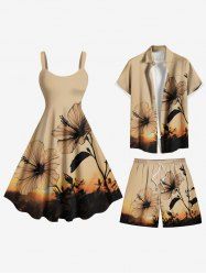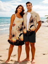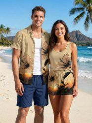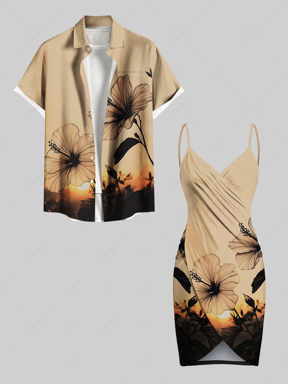 Hibiscus Flower Sunset Print Plus Size Matching Hawaii Beach Outfit For Couples