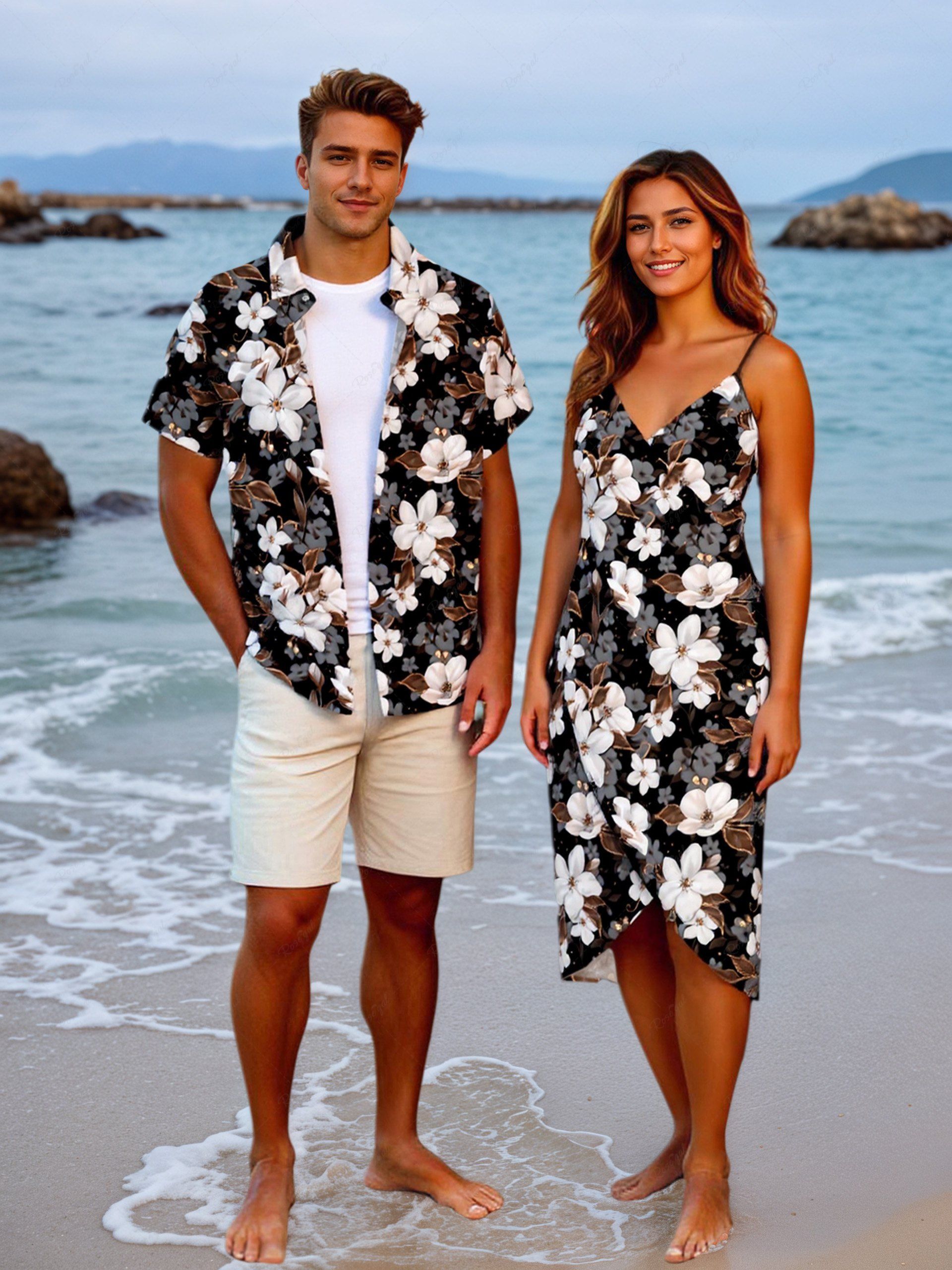 Ombre Flower Leaf Print Plus Size Matching Hawaii Beach Outfit For Couples
