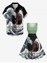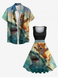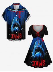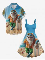 Shark Squid Jellyfish Print Plus Size Matching Hawaii Sea Creatures Beach Outfit For Couples