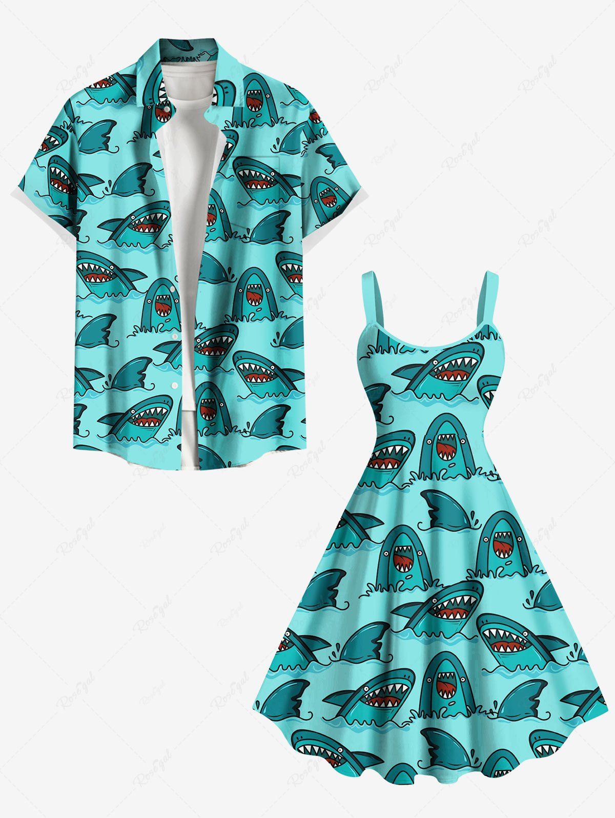 Sharks Sea Waves Print Plus Size Matching Hawaii Beach Outfit For Couples