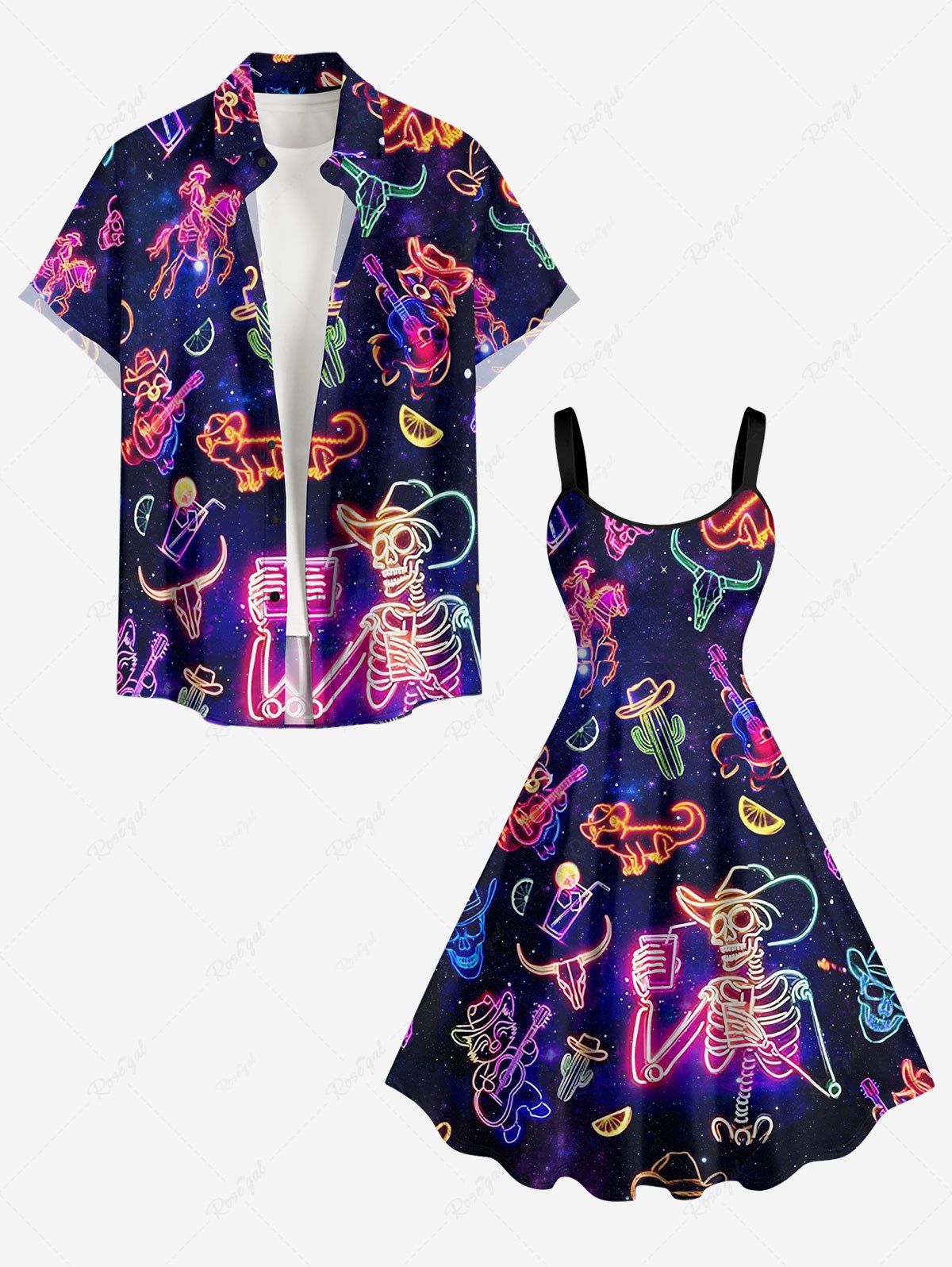 Skull Skeleton Fruit Juice Animal Guitar Print Plus Size Matching Hawaii Beach Outfit For Couples
