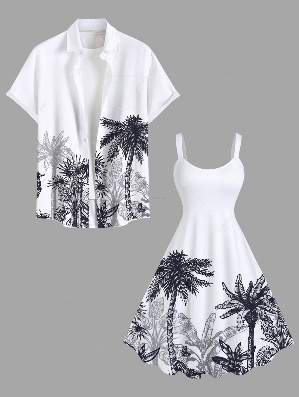 Tropical Leaf Coconut Tree Print Plus Size Matching Hawaii Beach Outfit For Couples