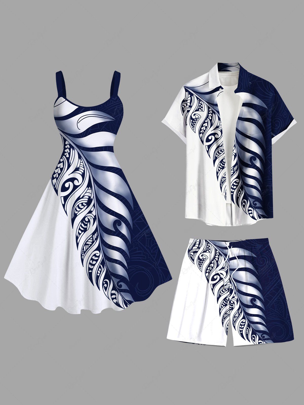 Two Tone Contrast Colorblock Tropical Leaf Print Plus Size Matching Hawaii Beach Outfit For Couples