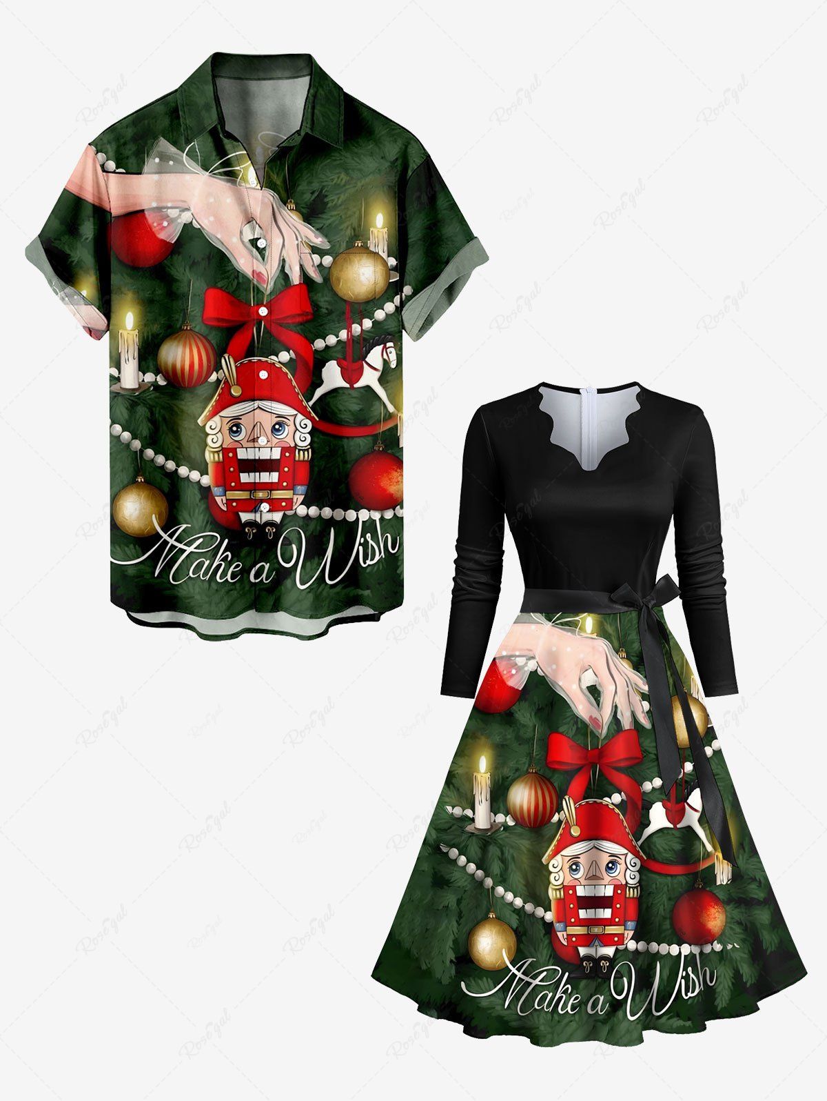 Glitter Christmas Ball Snowflake Two Tone Print Plus Size Matching Set For Couples