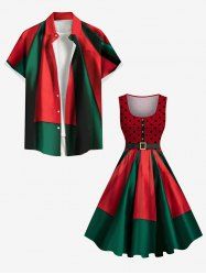 Christmas Tree Bowknot Two Tone Print Plus Size Matching Outfit For Couples