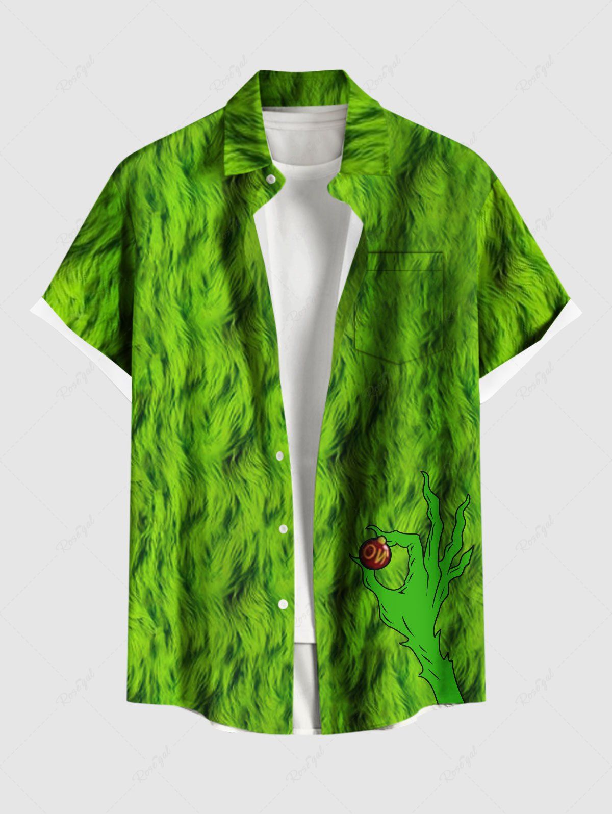 Plus Size Christmas Elf Claws Print Buttons Pocket Shirt For Men - 2xl