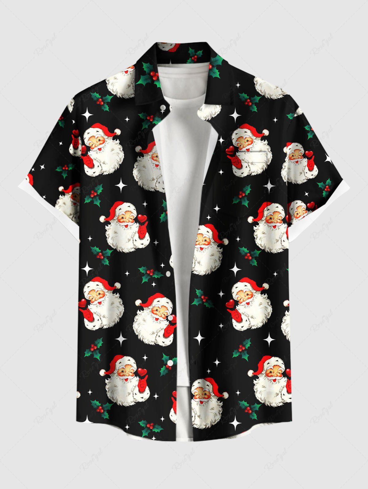 Plus Size Christmas Santa Claus Holly Fruit Print Buttons Pocket Shirt For Men - 6xl