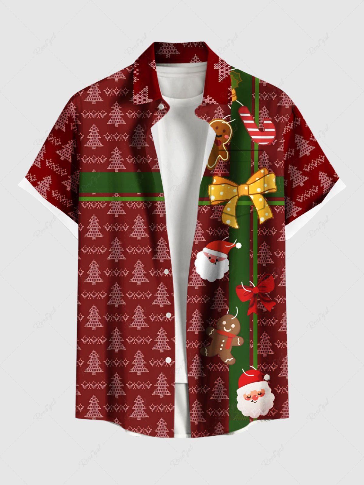 Plus Size Christmas Tree Santa Claus Gingerbread Bowknot Print Buttons Pocket Shirt For Men - 6xl