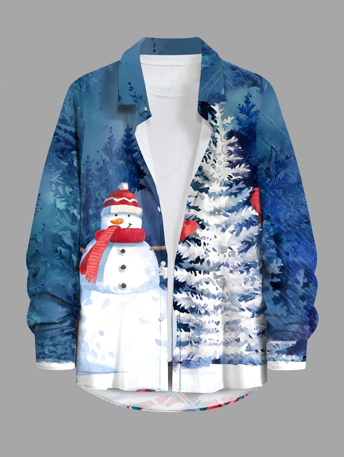 Plus Size Christmas Tree Snowman Forest Print Button Long Sleeves Shirt For Men - 5xl