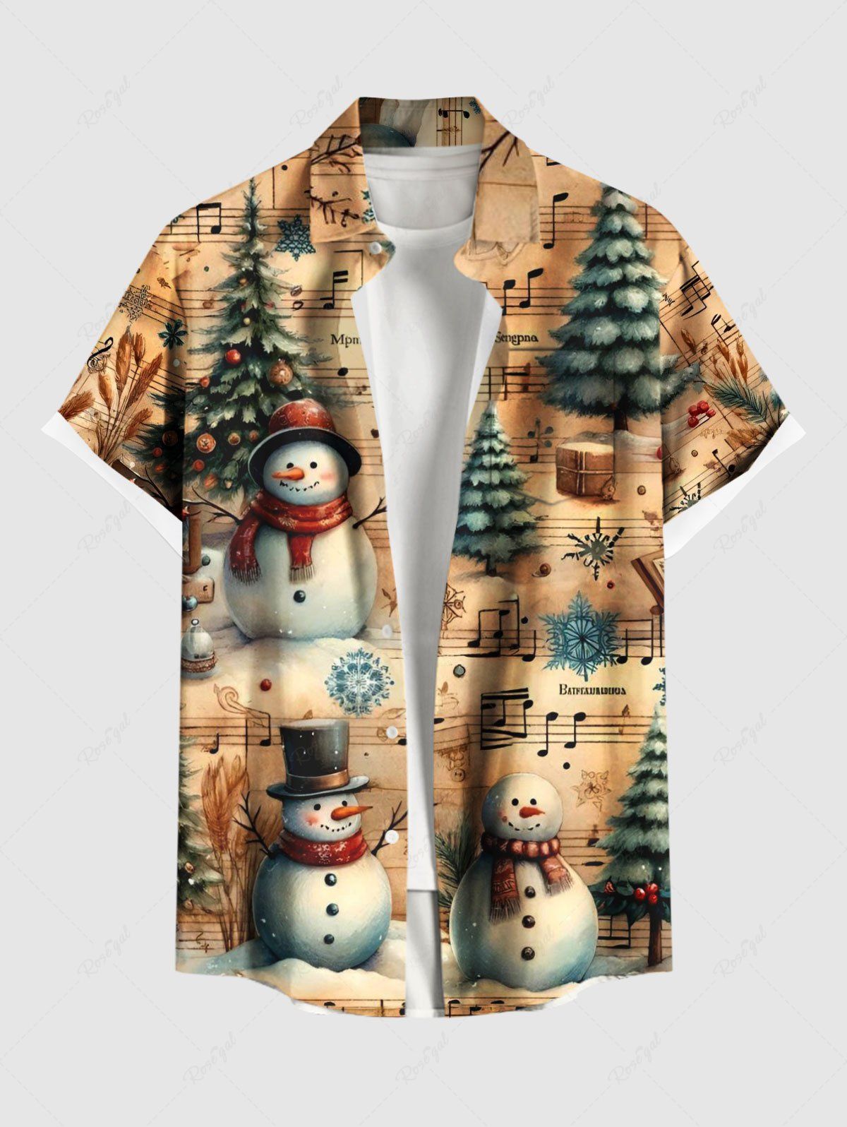 Plus Size Christmas Tree Snowman Ombre Music Symbol Print Button Pocket Shirt For Men - Xl
