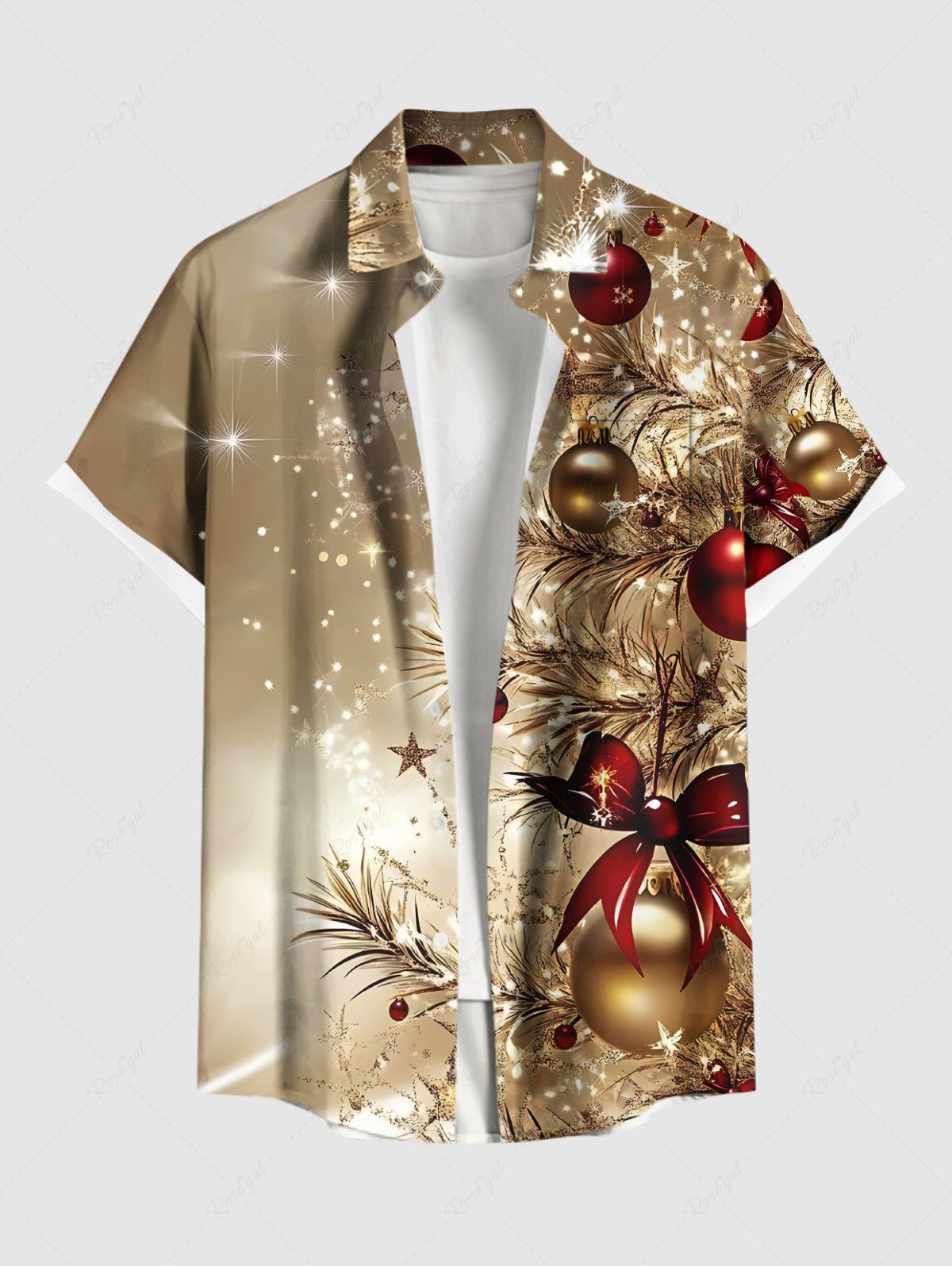 Plus Size Glitter Christmas Tree Ball Bowknot Print Button Pocket Shirt For Men - L