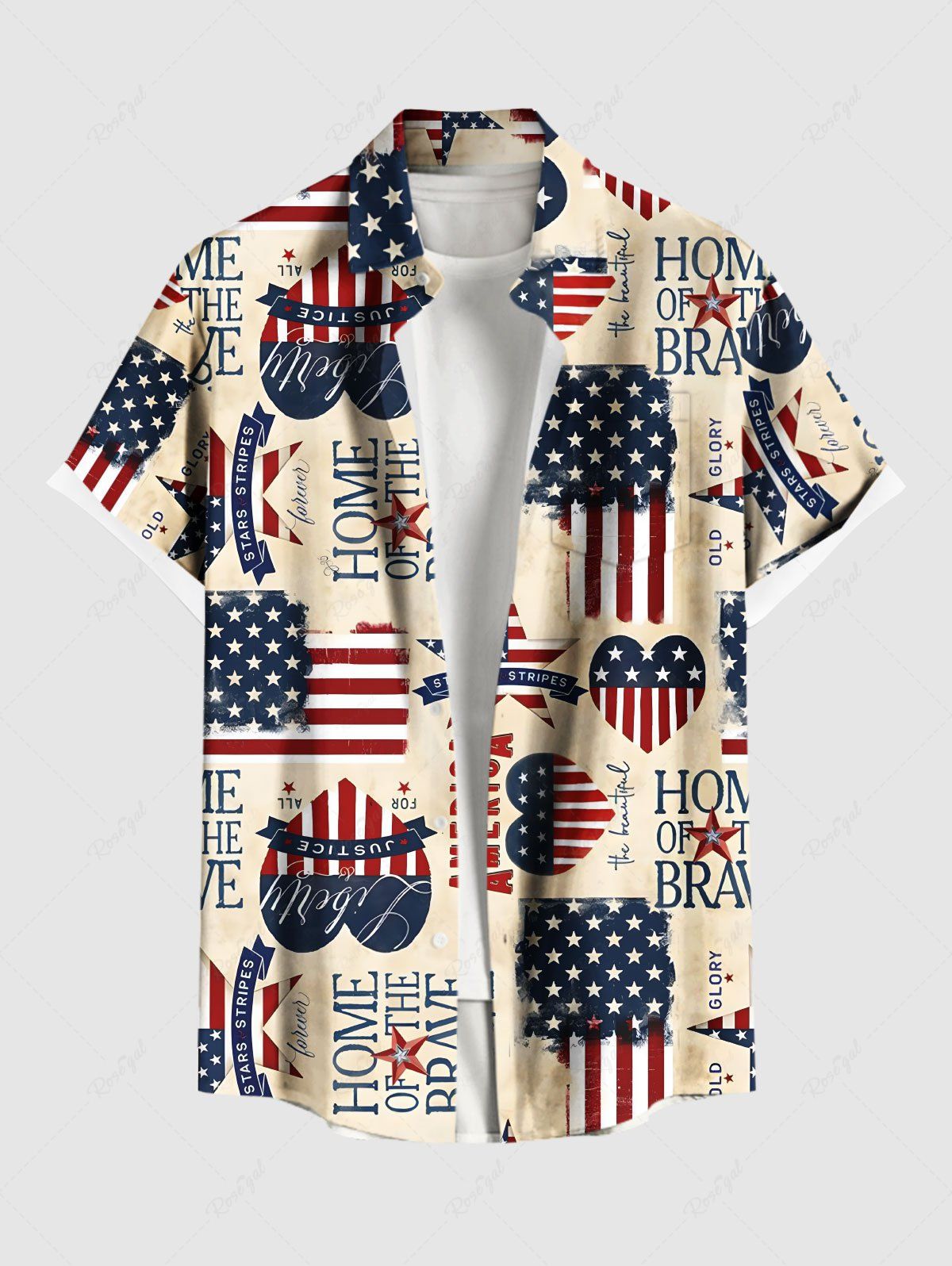 Plus Size Patriotic American Flag Heart Letters Print Hawaii Button Pocket Shirt For Men - 4xl