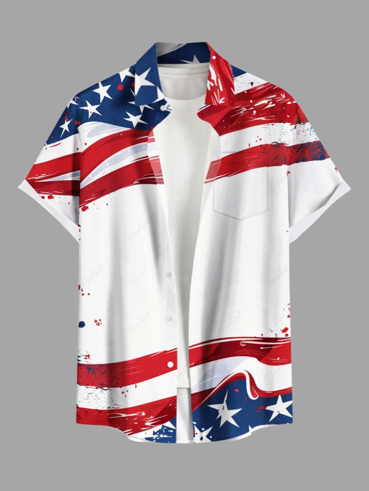 Plus Size Patriotic American Flag Paint Splatter Print Buttons Pocket Shirt For Men - 5xl