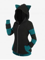 Plus Size Animal Ear Hooded Studded Full Zipper Jacket