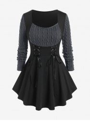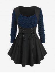 Plus Size Cable Knit Panel Mixed Media Lace Up Tee - S | Us 8