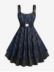 Plus Size Rose Flower Lace Panel Layered A Line Dress with Removable Belt - 5x | Us 30-32