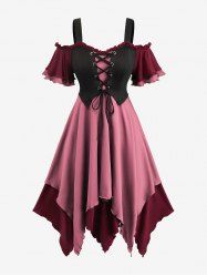 Gothic Plus Size Cold Shoulder Lace Up Layered Handkerchief Asymmetric Corset Renaissance Dress