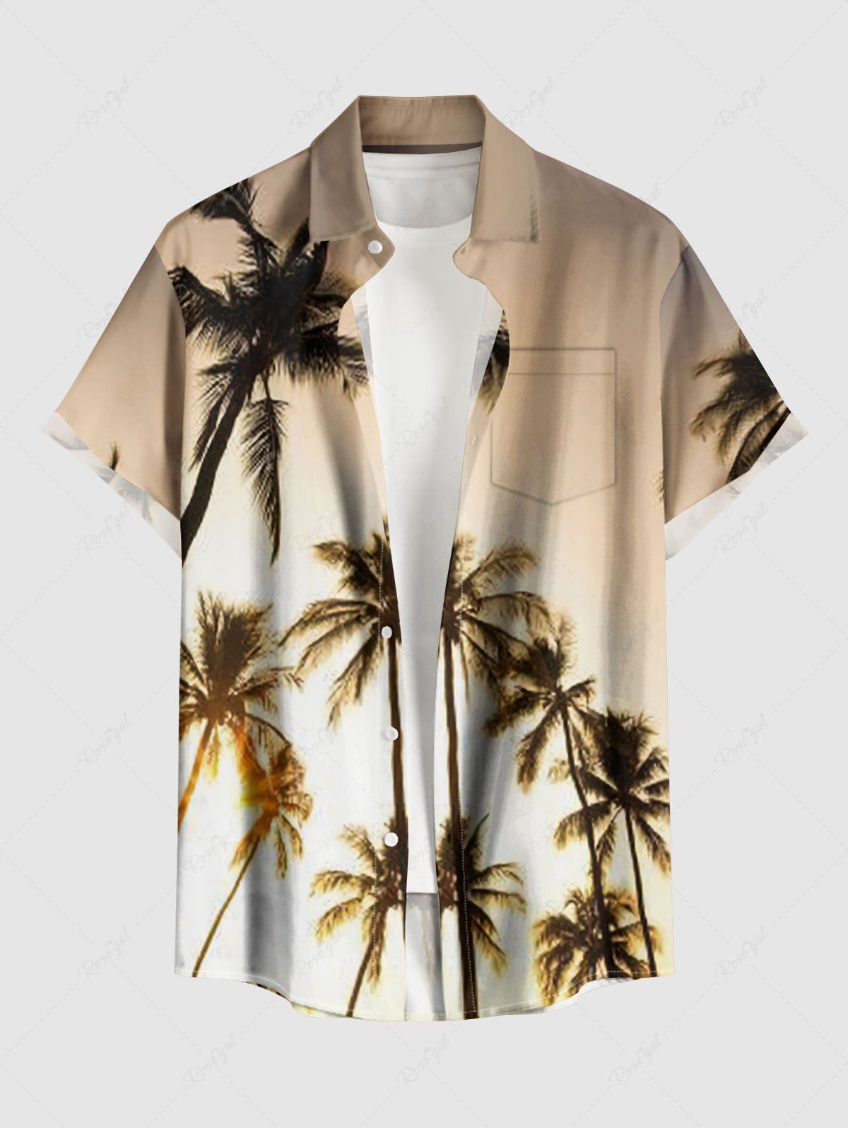 Plus Size Coconut Tree Dip Dye Ombre Print Hawaii Button Pocket Shirt For Men - S