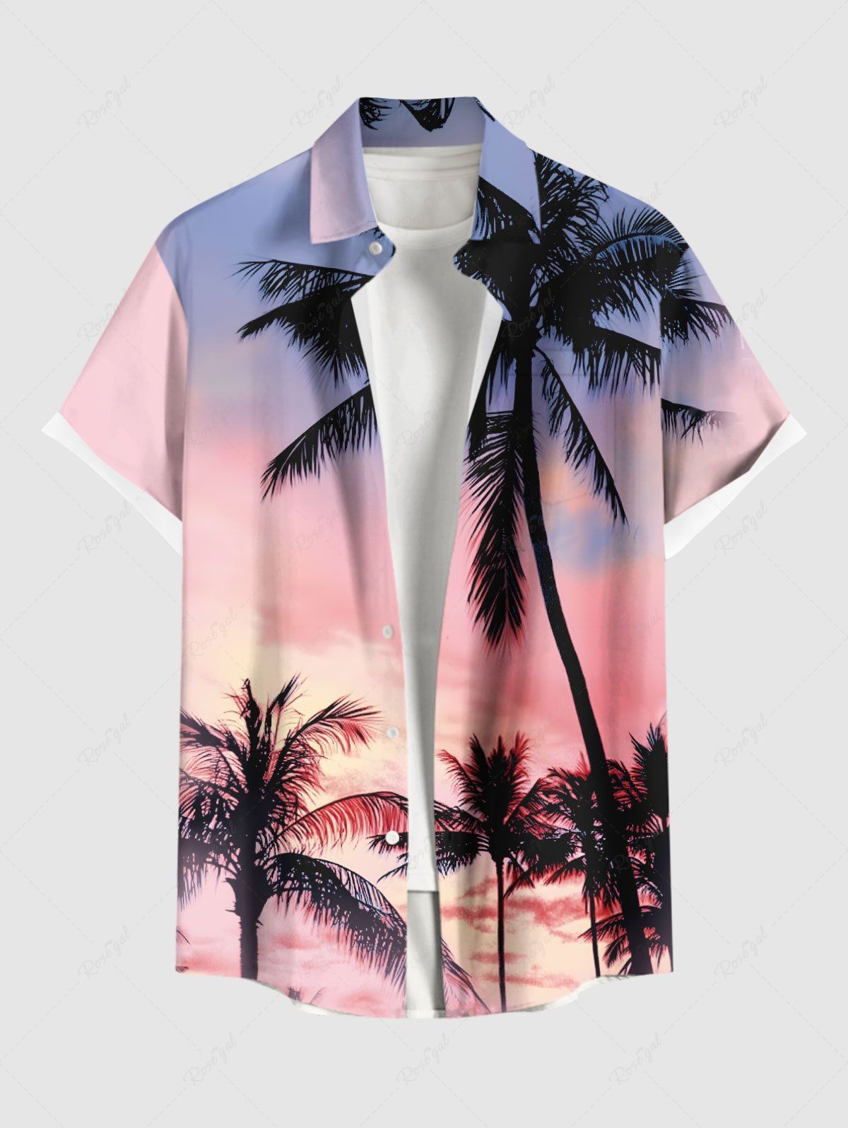 Plus Size Coconut Tree Ombre Colorful Sky Print Buttons Pocket Hawaii Shirt For Men - 3xl
