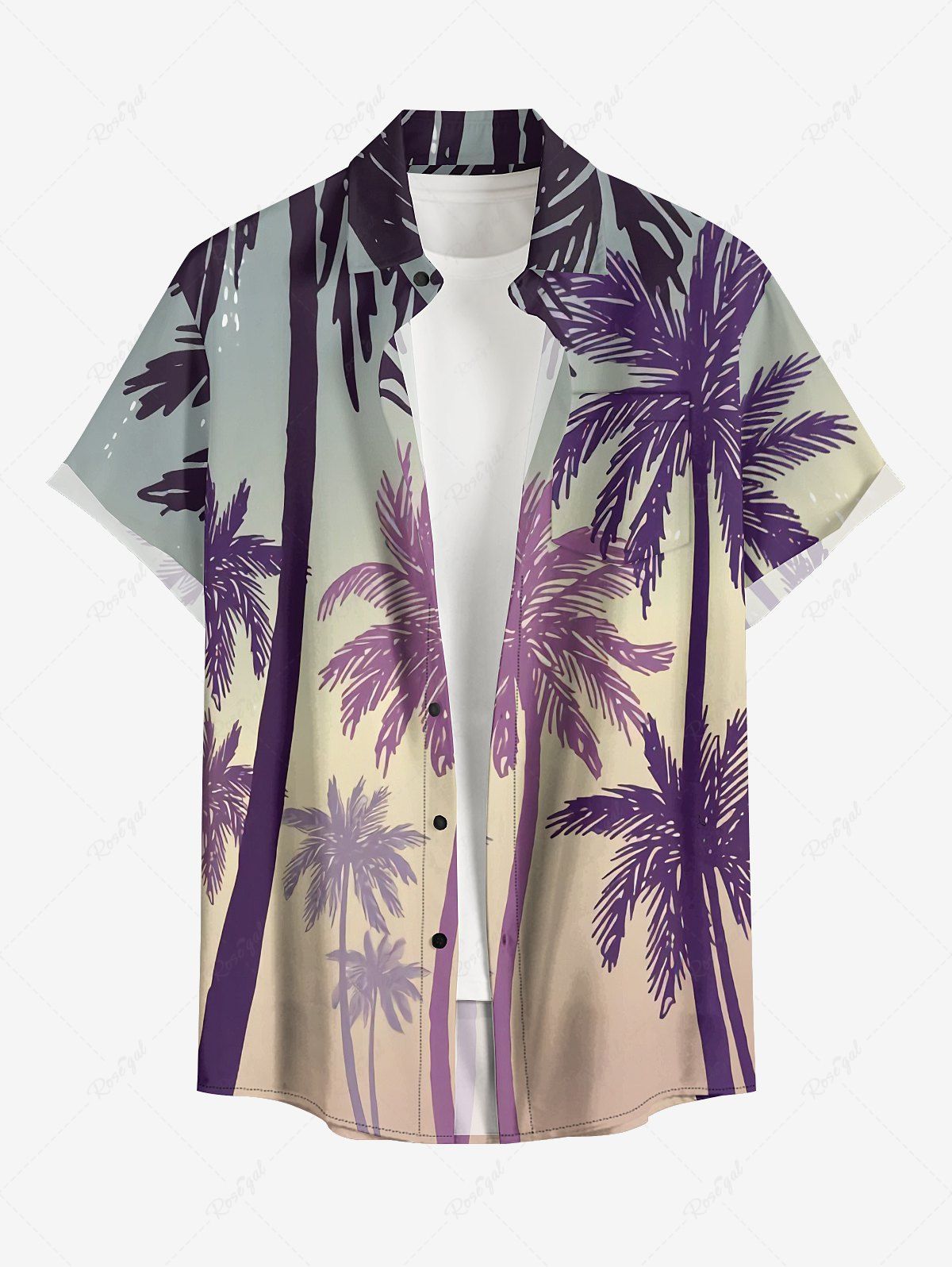 Plus Size Coconut Tree Ombre Print Buttons Pocket Hawaii Shirt For Men - 5xl