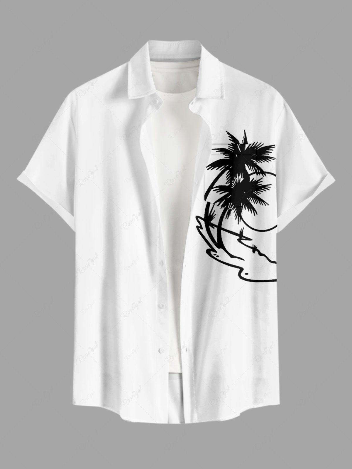 Plus Size Coconut Tree Print Buttons Pocket Hawaii Shirt For Men - S