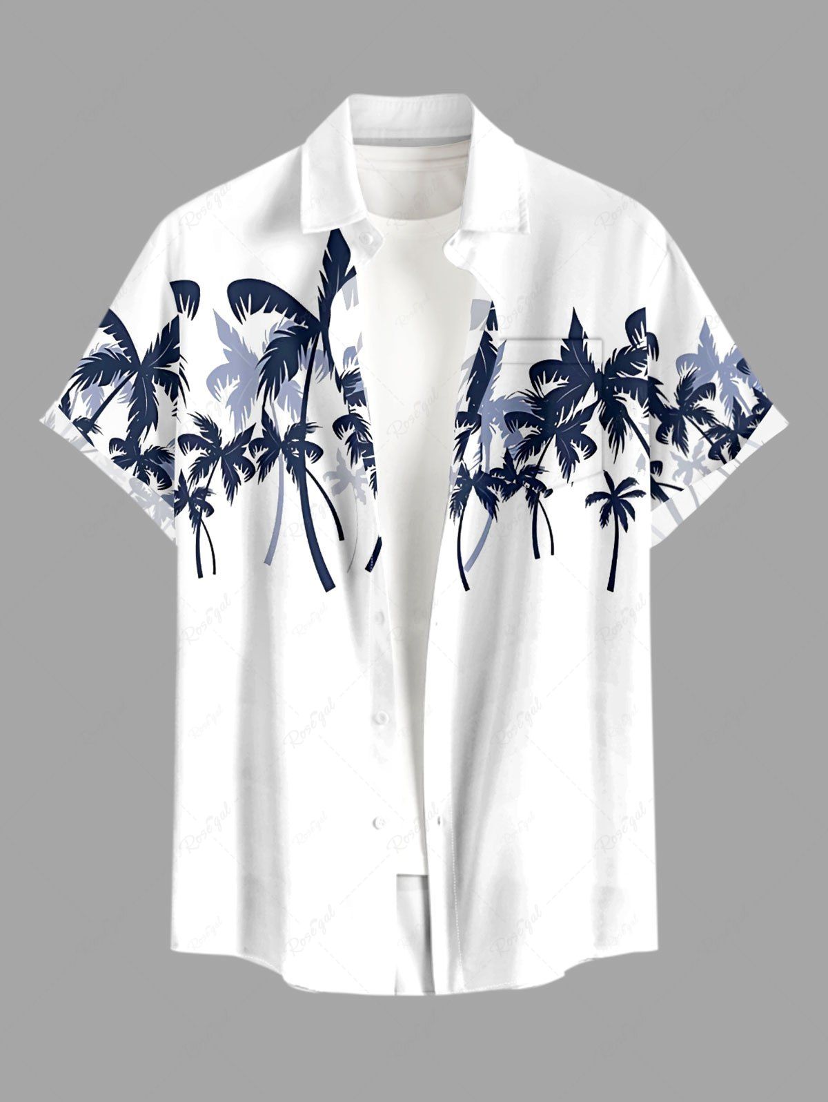 Plus Size Coconut Tree Print Buttons Pocket Hawaii Shirt For Men - S