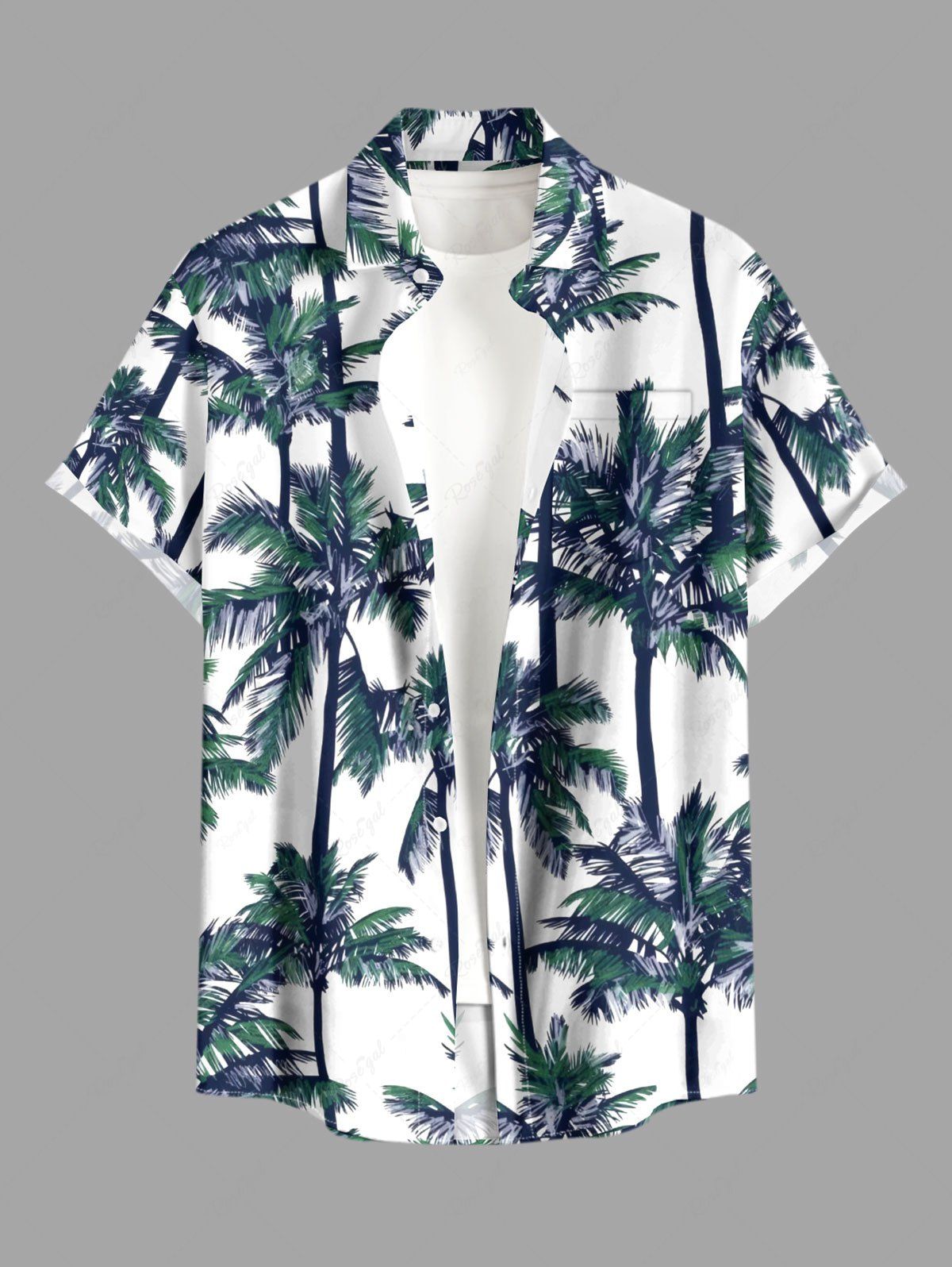 Plus Size Coconut Tree Print Hawaii Button Pocket Shirt For Men - Xl