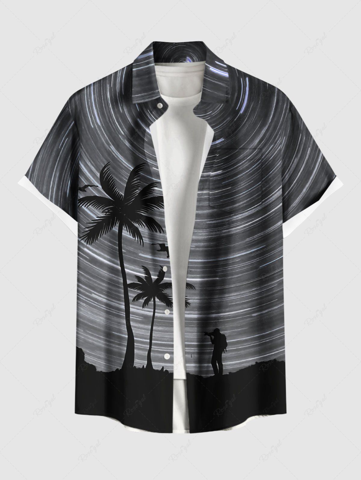 Plus Size Coconut Tree Spiral Galaxy Print Hawaii Button Pocket Shirt For Men - S