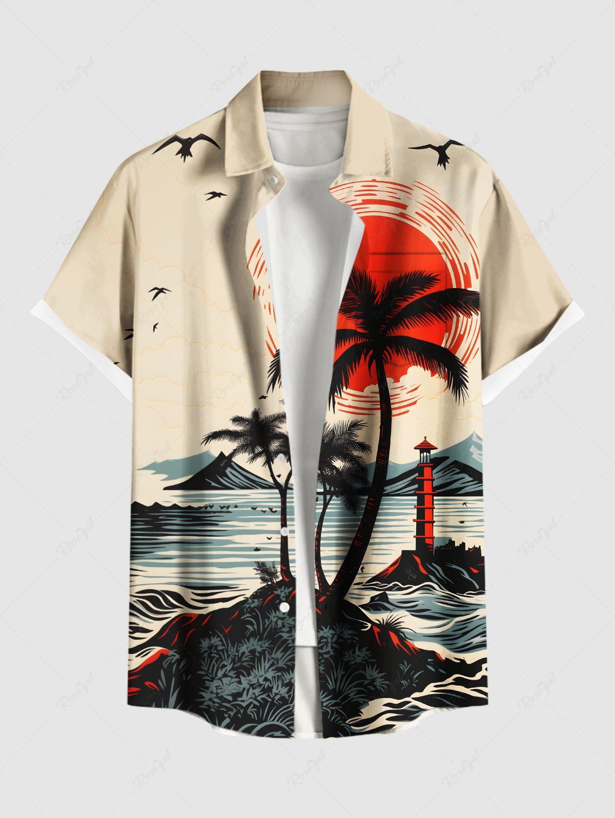 Plus Size Coconut Tree Sun Bird Seascape Print Buttons Pocket Hawaii Shirt For Men - 2xl