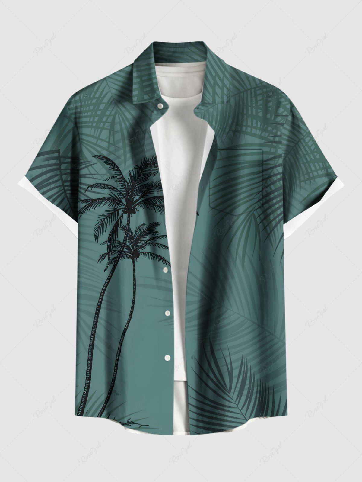Plus Size Coconut Tree Tropical Leaf Print Buttons Pocket Hawaii Shirt For Men - Xl