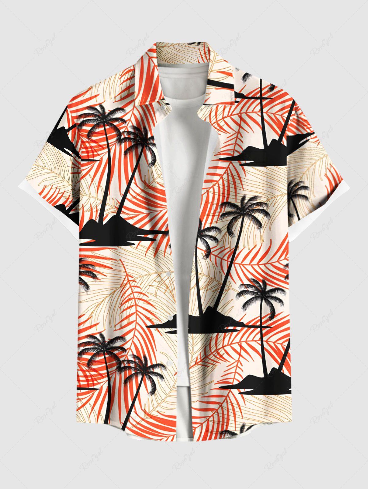 Plus Size Coconut Tree Tropical Leaves Print Hawaii Button Pocket Shirt For Men - S