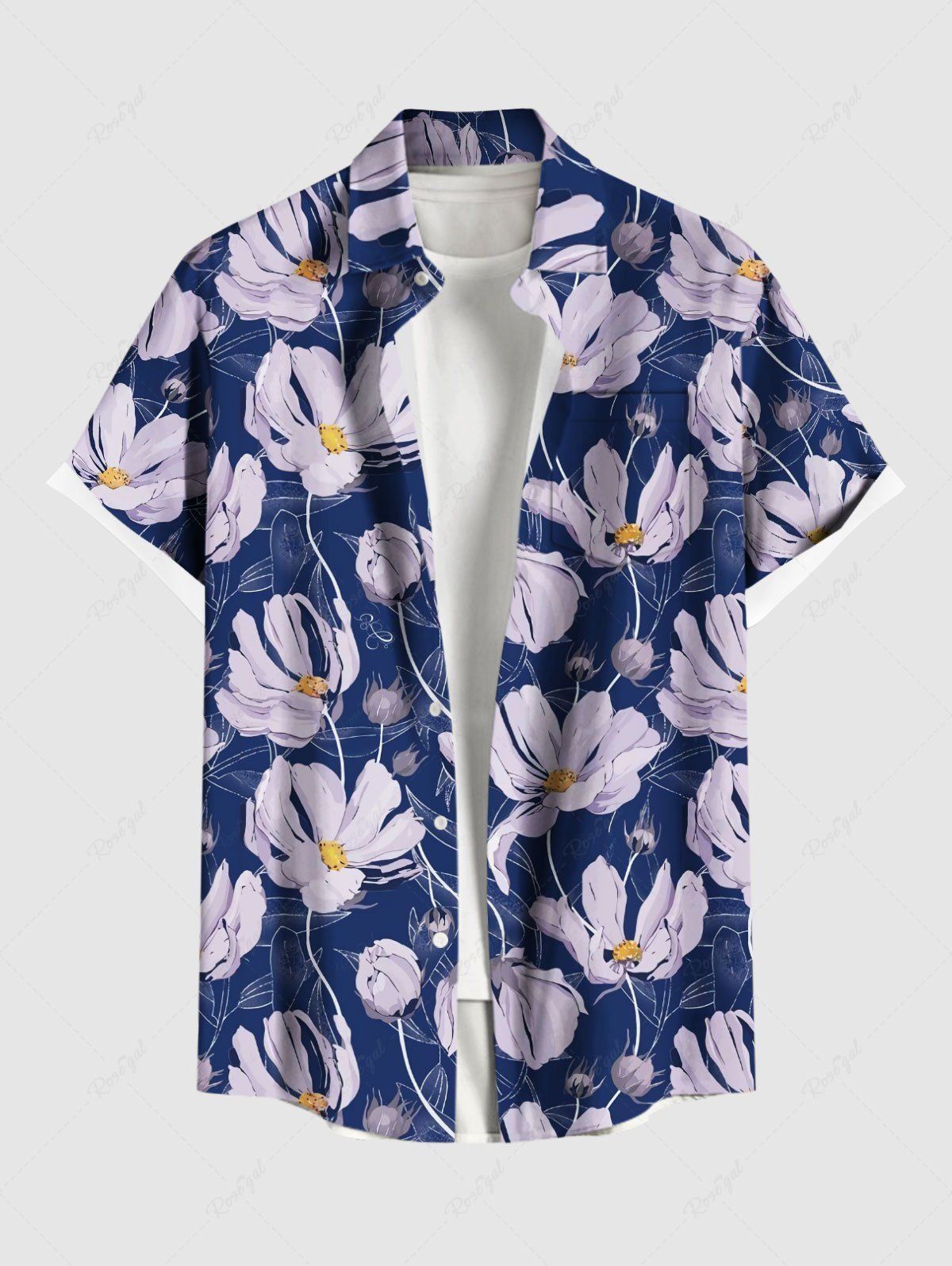Plus Size Daisy Flower Print Buttons Pocket Hawaii Shirt For Men - S