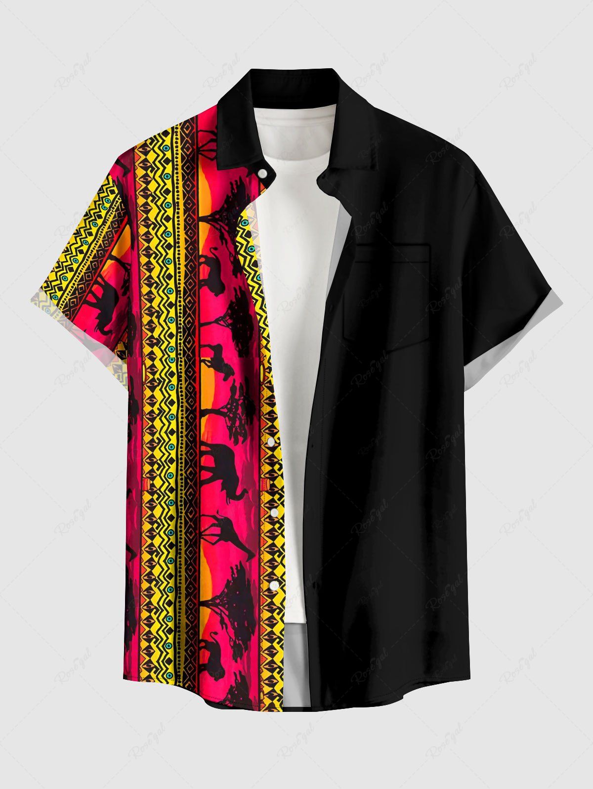 Plus Size Ethnic Animals Geometric Pattern Print Buttons Pocket Hawaii Shirt For Men - S
