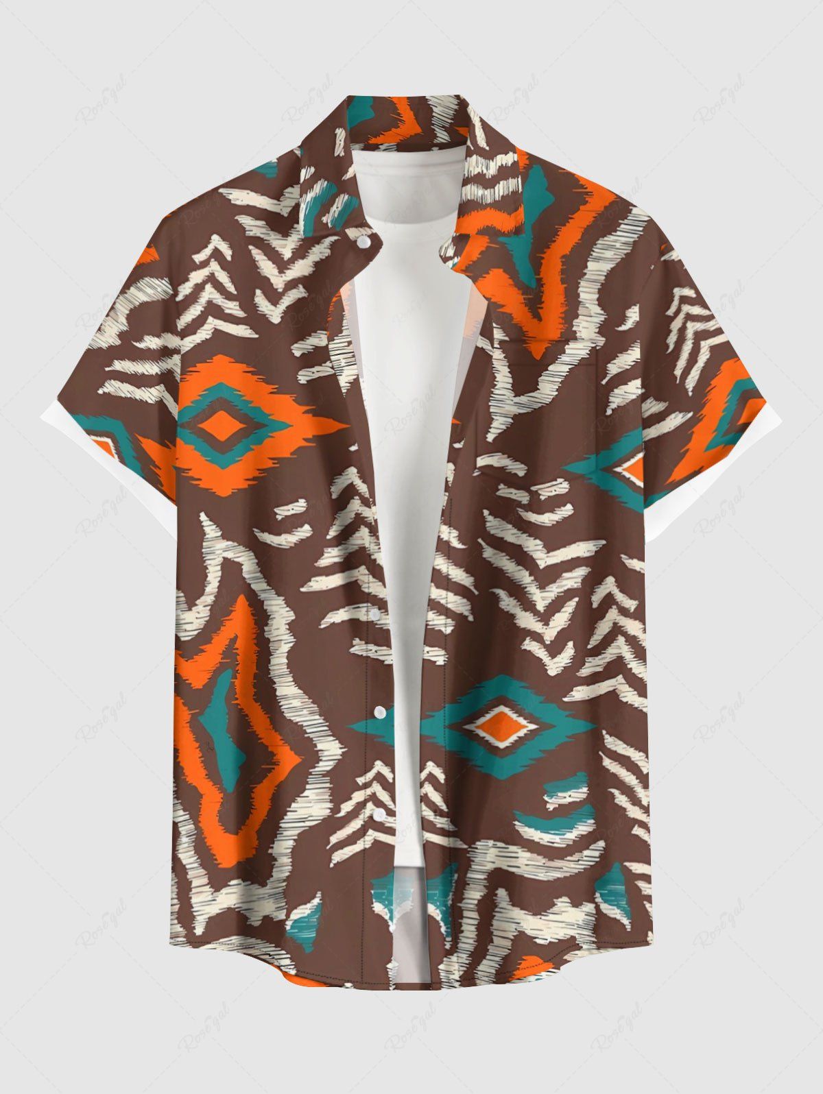 Plus Size Ethnic Geometric Graphic Print Hawaii Button Pocket Shirt For Men - 3xl