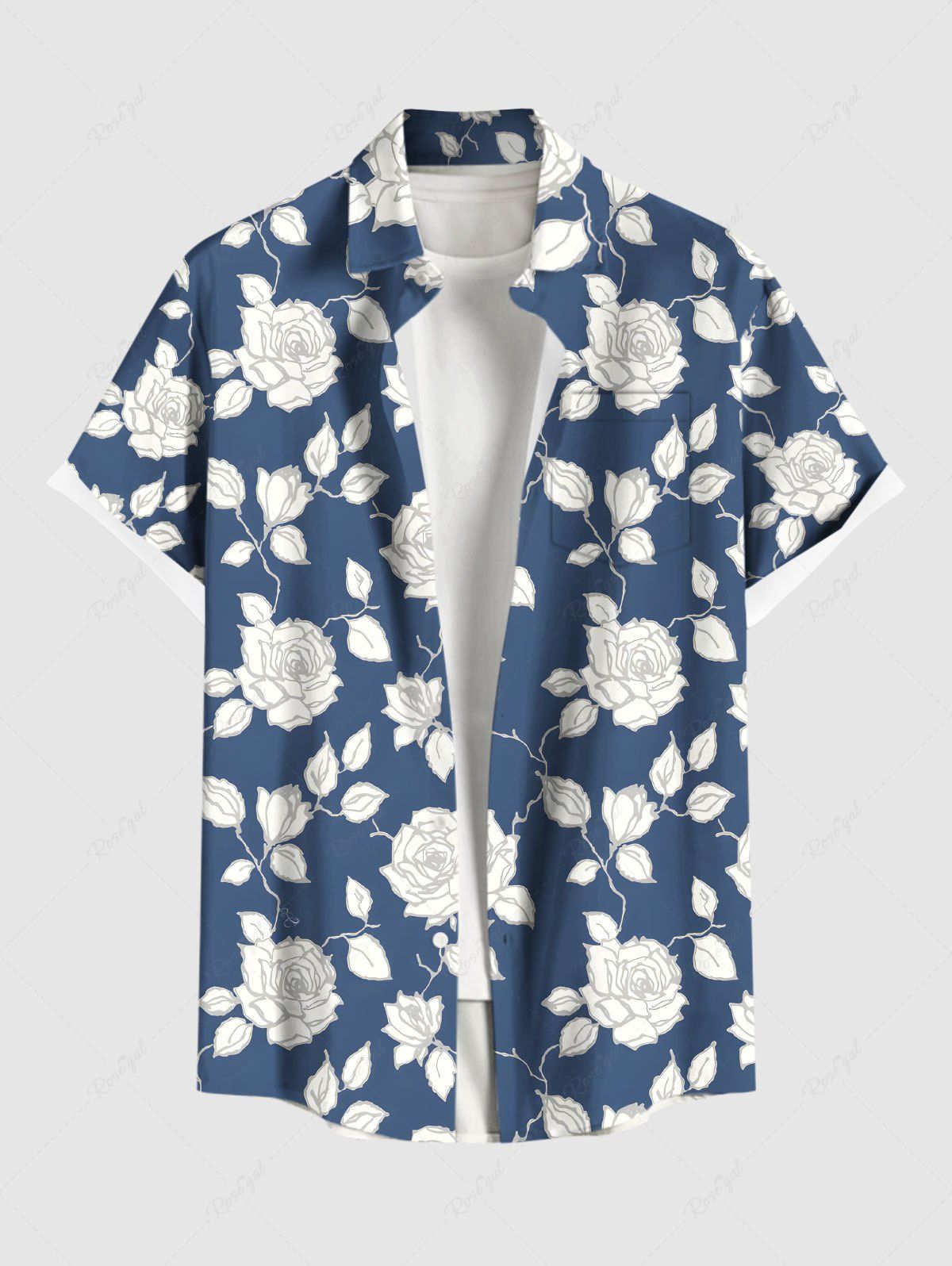 Plus Size Floral Leaves Branch Two Tone Print Hawaii Button Pocket Shirt For Men - 4xl