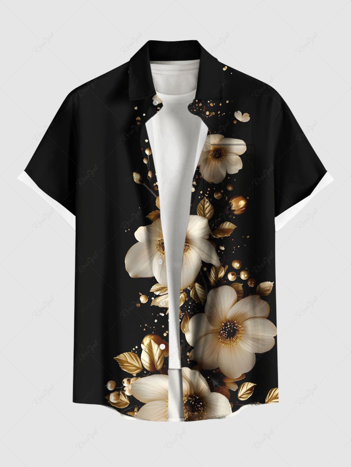 Plus Size Flower Gilding Leaf Print Hawaii Button Pocket Shirt For Men - S
