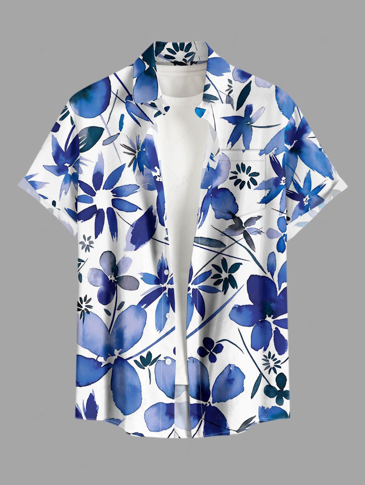 Plus Size Flower Leaf Print Buttons Pocket Hawaii Shirt For Men - 6xl