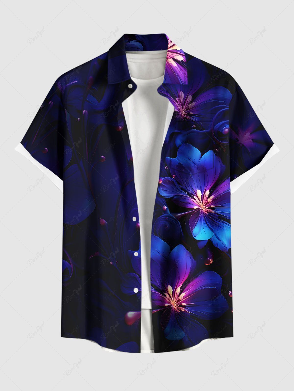 Plus Size Flowers Glitter 3D Print Buttons Pocket Hawaii Shirt For Men - S